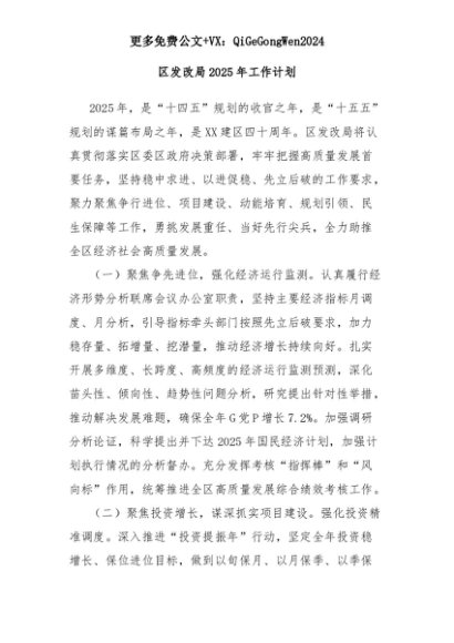 【七哥公文】2025年:区发改局2025年工作计划+更多免费公文+VX:QiGeGongWen2024+更多免费公文+VX:QiGeGongWen2024