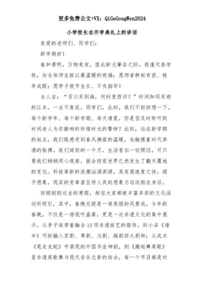 【七哥公文】2025年:小学校长在开学典礼上的讲话+更多免费公文+VX:QiGeGongWen2024+更多免费公文+VX:QiGeGongWen2024