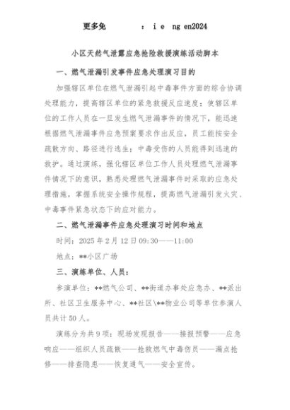 【七哥公文】2025年:小区天然气泄露应急抢险救援演练活动脚本+更多免费公文+VX:QiGeGongWen2024+更多免费公文+VX:QiGeGongWen2024