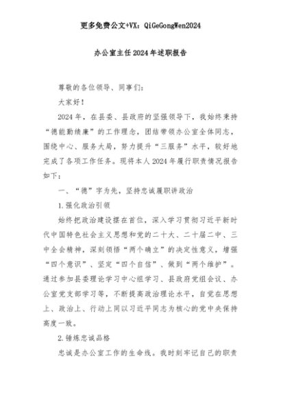 【七哥公文】2025年:办公室主任2024年述职报告+更多免费公文+VX:QiGeGongWen2024+更多免费公文+VX:QiGeGongWen2024