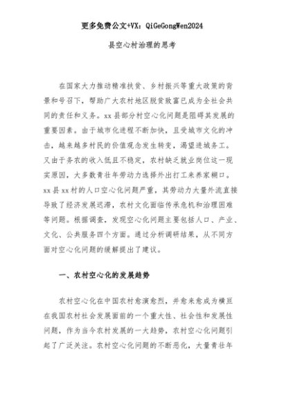 【七哥公文】2025年:县空心村治理的思考+更多免费公文+VX:QiGeGongWen2024+更多免费公文+VX:QiGeGongWen2024