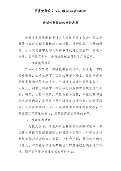 【七哥公文】2025年:分析性复核法的审计应用+更多免费公文+VX:QiGeGongWen2024+更多免费公文+VX:QiGeGongWen2024