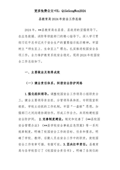 【七哥公文】2025年:县教育局2024年安全工作总结+更多免费公文+VX:QiGeGongWen2024+更多免费公文+VX:QiGeGongWen2024