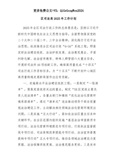 【七哥公文】2025年:区司法局2025年工作计划+更多免费公文+VX:QiGeGongWen2024+更多免费公文+VX:QiGeGongWen2024