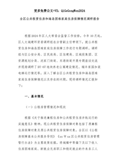 【七哥公文】2025年:全区公共租赁住房和海岛困难家庭住房保障情况调研报告+更多免费公文+VX:QiGeGongWen2024+更多免费公文+VX:QiGeGongWen2024
