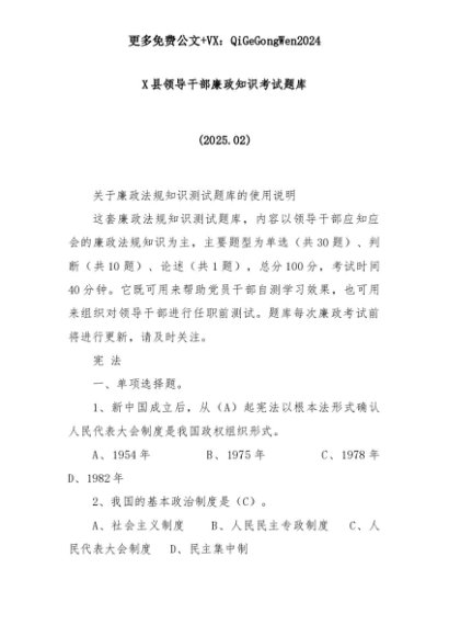 【七哥公文】2025年:X县领导干部廉政知识考试题库(2025.02)+更多免费公文+VX:QiGeGongWen2024+更多免费公文+VX:QiGeGongWen2024