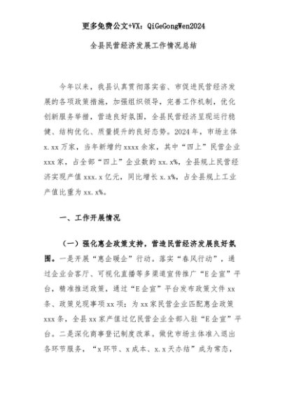【七哥公文】2025年:全县民营经济发展工作情况总结+更多免费公文+VX:QiGeGongWen2024+更多免费公文+VX:QiGeGongWen2024