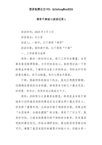【七哥公文】2025年:领导干部谈心谈话记录1+更多免费公文+VX:QiGeGongWen2024+更多免费公文+VX:QiGeGongWen2024