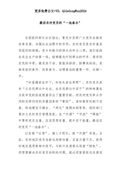 【七哥公文】2025年:激活农村党员的“一池春水”+更多免费公文+VX:QiGeGongWen2024+更多免费公文+VX:QiGeGongWen2024