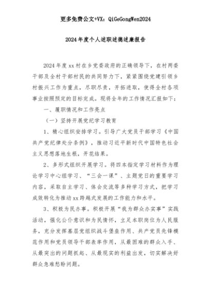 【七哥公文】2025年:2024年度个人述职述德述廉报告+更多免费公文+VX:QiGeGongWen2024+更多免费公文+VX:QiGeGongWen2024