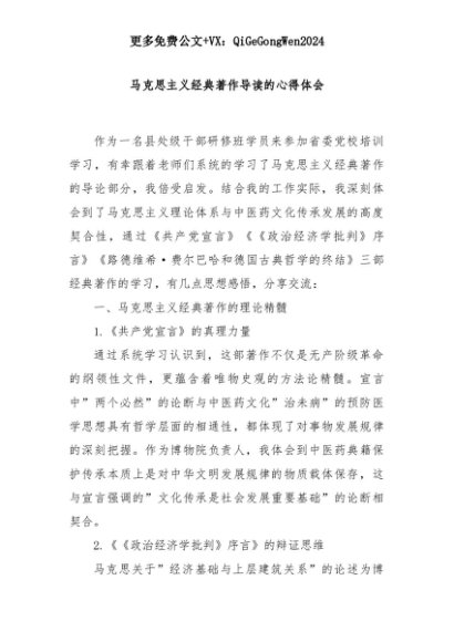【七哥公文】2025年:马克思主义经典著作导读的心得体会+更多免费公文+VX:QiGeGongWen2024+更多免费公文+VX:QiGeGongWen2024