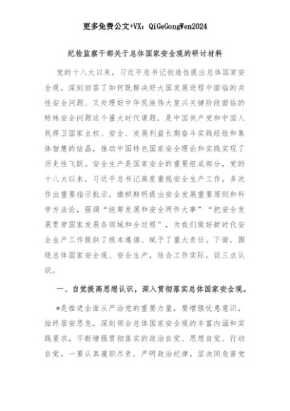 【七哥公文】2025年:纪检监察干部关于总体国家安全观的研讨材料+更多免费公文+VX:QiGeGongWen2024+更多免费公文+VX:QiGeGongWen2024