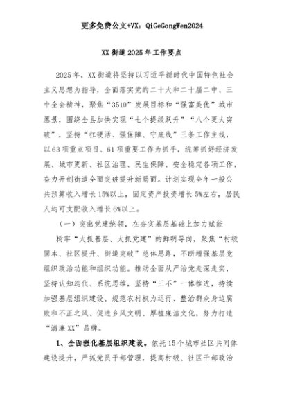 【七哥公文】2025年:XX街道2025年工作要点+更多免费公文+VX:QiGeGongWen2024+更多免费公文+VX:QiGeGongWen2024