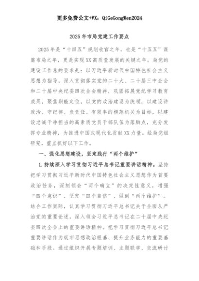 【七哥公文】2025年:2025年市局党建工作要点+更多免费公文+VX:QiGeGongWen2024+更多免费公文+VX:QiGeGongWen2024