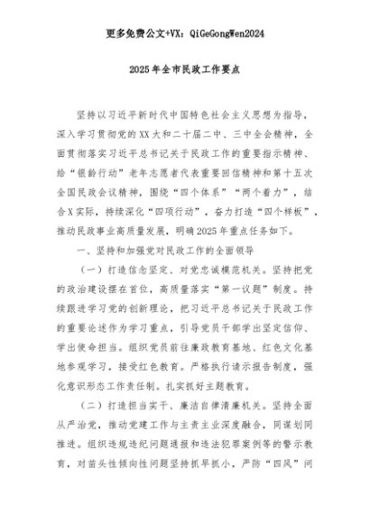 【七哥公文】2025年:2025年全市民政工作要点+更多免费公文+VX:QiGeGongWen2024+更多免费公文+VX:QiGeGongWen2024