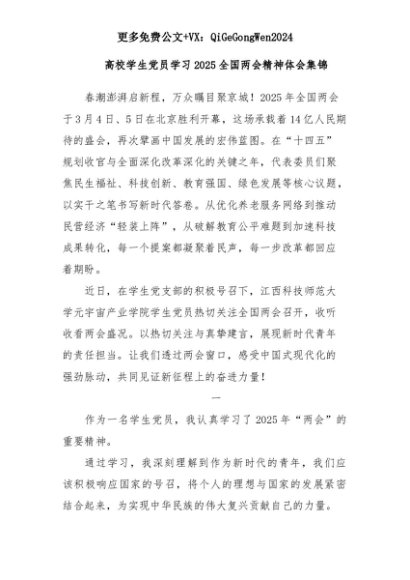 【七哥公文】2025年:高校学生党员学习2025全国两会精神体会集锦+更多免费公文+VX:QiGeGongWen2024+更多免费公文+VX:QiGeGongWen2024