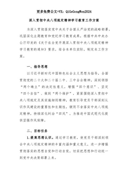【七哥公文】2025年:深入贯彻中央八项规定精神学习教育工作方案+更多免费公文+VX:QiGeGongWen2024+更多免费公文+VX:QiGeGongWen2024