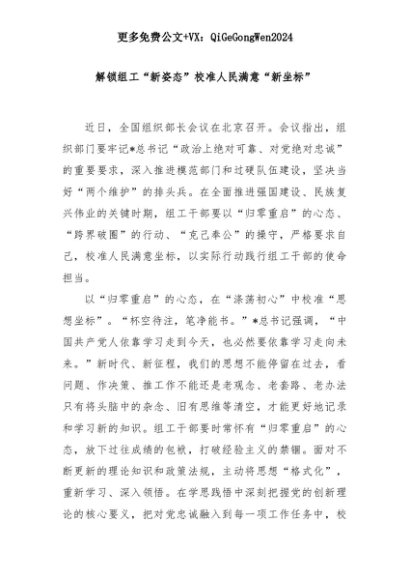 【七哥公文】2025年:解锁组工“新姿态”校准人民满意“新坐标”+更多免费公文+VX:QiGeGongWen2024+更多免费公文+VX:QiGeGongWen2024