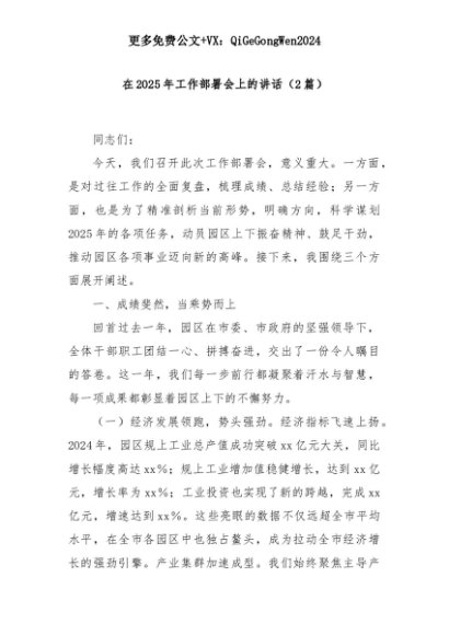 【七哥公文】2025年:(2篇)在2025年工作部署会上的讲话+更多免费公文+VX:QiGeGongWen2024+更多免费公文+VX:QiGeGongWen2024