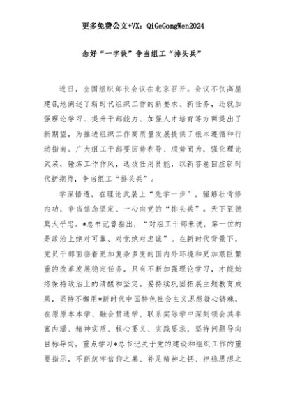 【七哥公文】2025年:念好“一字诀”争当组工“排头兵”+更多免费公文+VX:QiGeGongWen2024+更多免费公文+VX:QiGeGongWen2024