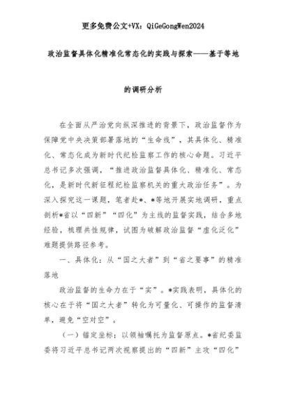 【七哥公文】2025年:政治监督具体化精准化常态化的实践与探索——基于等地的调研分析+更多免费公文+VX:QiGeGongWen2024+更多免费公文+VX:QiGeGongWen2024