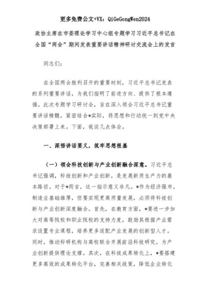【七哥公文】2025年:政协主席在市委理论学习中心组专题学习习近平总书记在全国“两会”期间发表重要讲话精神研讨交流会上的发言+更多免费公文+VX:QiGeGongWen2024+更多免费公文+VX:QiGeGongWen2024