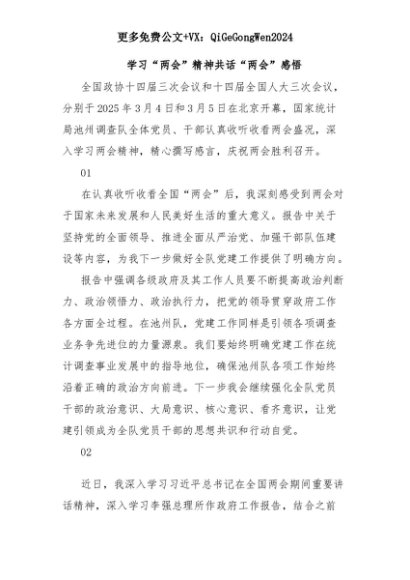 【七哥公文】2025年:学习“两会”精神共话“两会”感悟+更多免费公文+VX:QiGeGongWen2024+更多免费公文+VX:QiGeGongWen2024