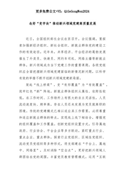 【七哥公文】2025年:念好“变字诀”推动新兴领域党建高质量发展+更多免费公文+VX:QiGeGongWen2024+更多免费公文+VX:QiGeGongWen2024