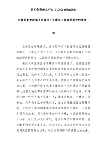【七哥公文】2025年:完善监督管理体系是确保民生建设工作取得实效的重要一环+更多免费公文+VX:QiGeGongWen2024+更多免费公文+VX:QiGeGongWen2024