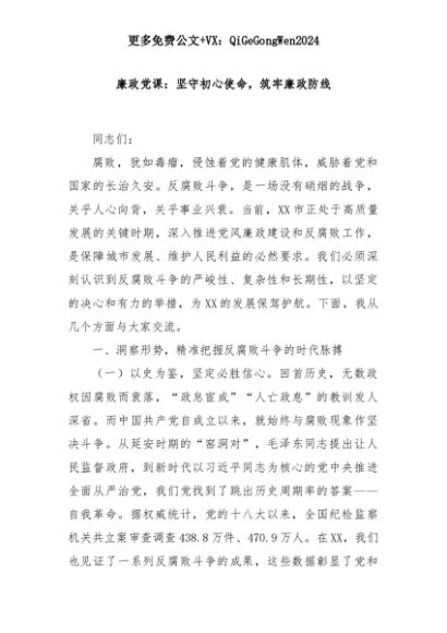 【七哥公文】2025年:廉政党课:坚守初心使命,筑牢廉政防线+更多免费公文+VX:QiGeGongWen2024+更多免费公文+VX:QiGeGongWen2024