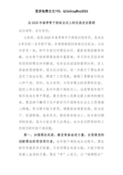 【七哥公文】2025年:在2025年春季青干班结业式上的交流发言提纲+更多免费公文+VX:QiGeGongWen2024+更多免费公文+VX:QiGeGongWen2024