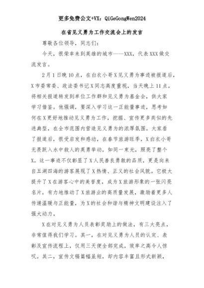 【七哥公文】2025年:在省见义勇为工作交流会上的发言+更多免费公文+VX:QiGeGongWen2024+更多免费公文+VX:QiGeGongWen2024