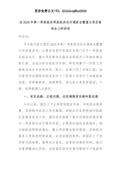 【七哥公文】2025年:在2025年第一季度经济季度经济运行调度会暨重大项目推进会上的讲话+更多免费公文+VX:QiGeGongWen2024+更多免费公文+VX:QiGeGongWen2024