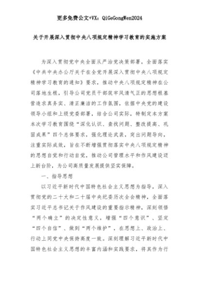 【七哥公文】2025年:关于开展深入贯彻中央八项规定精神学习教育的实施方案+更多免费公文+VX:QiGeGongWen2024+更多免费公文+VX:QiGeGongWen2024