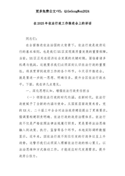 【七哥公文】2025年:在2025年依法行政工作推进会上的讲话+更多免费公文+VX:QiGeGongWen2024+更多免费公文+VX:QiGeGongWen2024