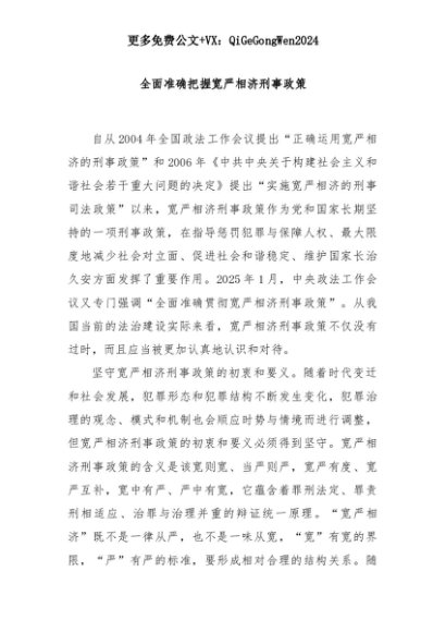 【七哥公文】2025年:全面准确把握宽严相济刑事政策+更多免费公文+VX:QiGeGongWen2024+更多免费公文+VX:QiGeGongWen2024