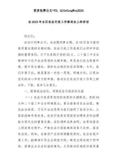 【七哥公文】2025年:在2025年全区依法行政工作推进会上的讲话+更多免费公文+VX:QiGeGongWen2024+更多免费公文+VX:QiGeGongWen2024