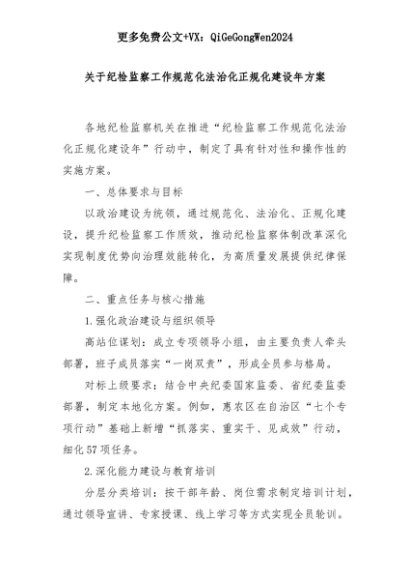 【七哥公文】2025年:关于纪检监察工作规范化法治化正规化建设年方案+更多免费公文+VX:QiGeGongWen2024+更多免费公文+VX:QiGeGongWen2024