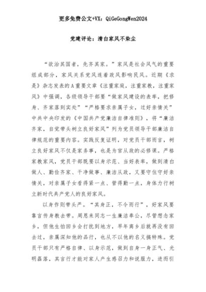【七哥公文】2025年:党建评论:清白家风不染尘+更多免费公文+VX:QiGeGongWen2024+更多免费公文+VX:QiGeGongWen2024