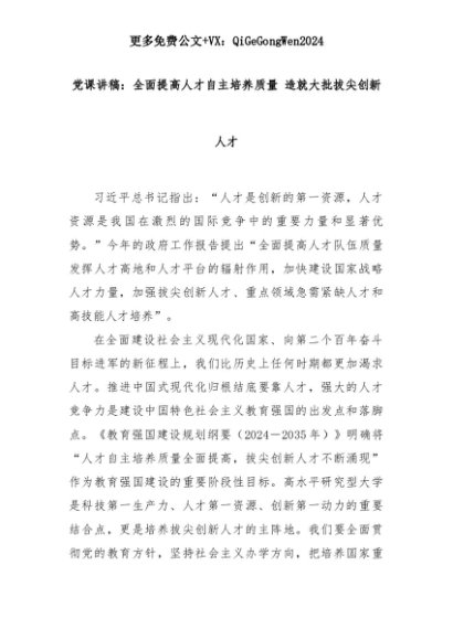 【七哥公文】2025年:党课讲稿:全面提高人才自主培养质量 造就大批拔尖创新人才+更多免费公文+VX:QiGeGongWen2024+更多免费公文+VX:QiGeGongWen2024