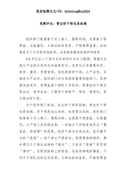 【七哥公文】2025年:党建评论:管出好干部也是政绩+更多免费公文+VX:QiGeGongWen2024+更多免费公文+VX:QiGeGongWen2024