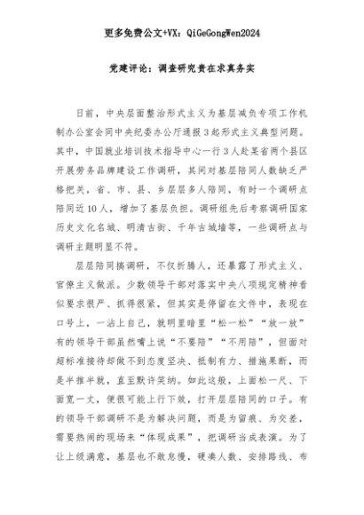 【七哥公文】2025年:党建评论:调查研究贵在求真务实+更多免费公文+VX:QiGeGongWen2024+更多免费公文+VX:QiGeGongWen2024