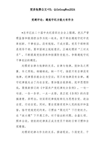 【七哥公文】2025年:党建评论:遵规守纪方能大有作为+更多免费公文+VX:QiGeGongWen2024+更多免费公文+VX:QiGeGongWen2024