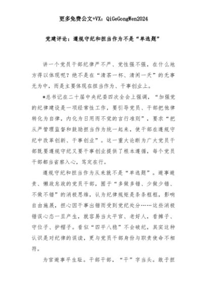 【七哥公文】2025年:党建评论:遵规守纪和担当作为不是“单选题”+更多免费公文+VX:QiGeGongWen2024+更多免费公文+VX:QiGeGongWen2024