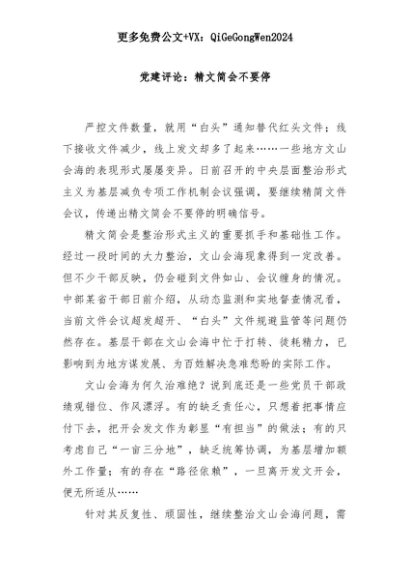 【七哥公文】2025年:党建评论:精文简会不要停+更多免费公文+VX:QiGeGongWen2024+更多免费公文+VX:QiGeGongWen2024