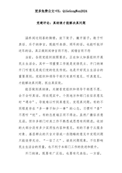 【七哥公文】2025年:党建评论:真纳谏才能解决真问题+更多免费公文+VX:QiGeGongWen2024+更多免费公文+VX:QiGeGongWen2024