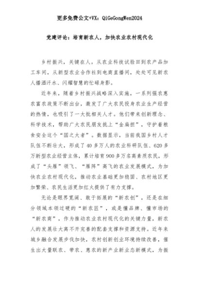 【七哥公文】2025年:党建评论:培育新农人,加快农业农村现代化+更多免费公文+VX:QiGeGongWen2024+更多免费公文+VX:QiGeGongWen2024