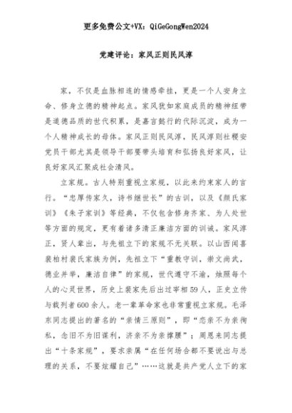 【七哥公文】2025年:党建评论:家风正则民风淳+更多免费公文+VX:QiGeGongWen2024+更多免费公文+VX:QiGeGongWen2024