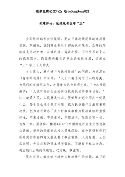 【七哥公文】2025年:党建评论:政绩观贵在守“正”+更多免费公文+VX:QiGeGongWen2024+更多免费公文+VX:QiGeGongWen2024