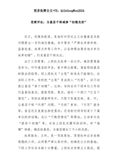 【七哥公文】2025年:党建评论:为基层干部减掉“初稿负担”+更多免费公文+VX:QiGeGongWen2024+更多免费公文+VX:QiGeGongWen2024